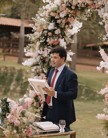 Falar de amor e poder participar do momento mais feliz da vida das pessoas: é mais que uma profissão, é uma dádiva. Gosto de contar histórias com leveza, graça, poesia e emoção, além disso sou apaixonado por cerimônias em que os noivos realmente vivem aquele momento tão singular. Sou grato a Deus pela oportunidade de poder fazer o que eu amo e ainda poder conhecer pessoas incríveis como vocês.